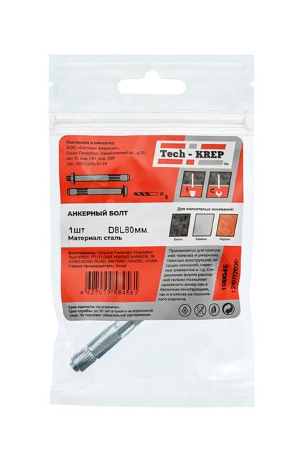 Анкерный болт 8х80 (1 шт) - пакет Tech-Krep в Солнечный