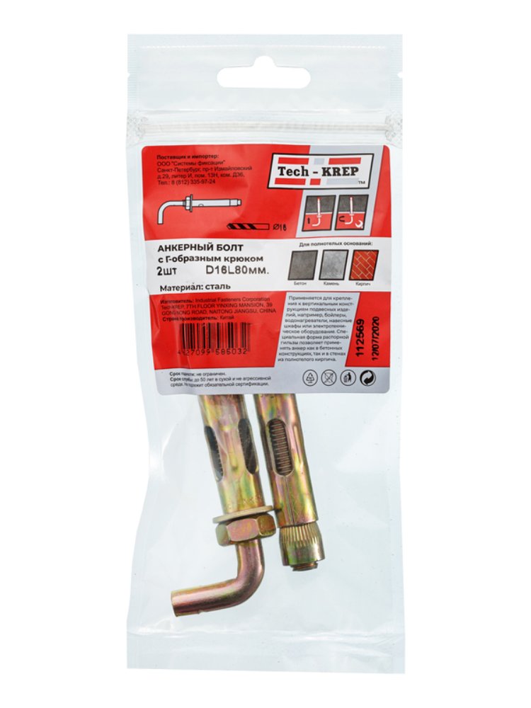 Анкерный болт с Г-образным крюком HL 16x80 от Tech-Krep представляет собой надежный крепежный элемент, предназначенный для монтажа тяжелых конструкций к бетонным, каменным или кирпичным основаниям. Изготовлен из высокопрочной стали с антикоррозийным покрытием, что обеспечивает долговечность и устойчивость к внешним воздействиям. Диаметр болта составляет 16 мм, длина — 80 мм, что позволяет использовать его для крепления массивных элементов. Комплект из 2 штук упакован в удобный пакет, что упрощает хранение и транспортировку. Конструкция с крюком обеспечивает надежное крепление подвесных систем и оборудования.
