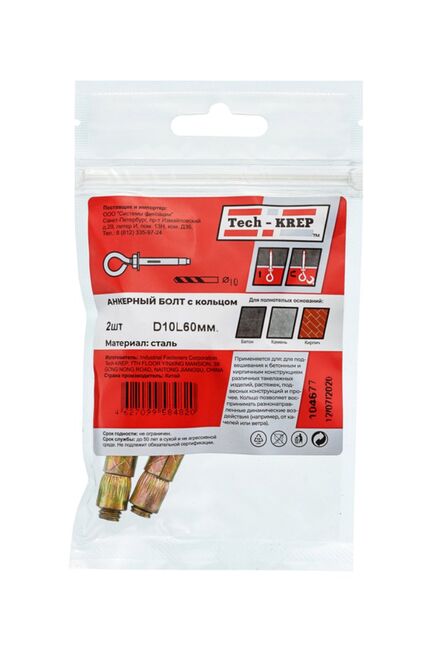 Анкерный болт с кольцом 10х60 (2 шт) - пакет Tech-Krep в Солнечный
