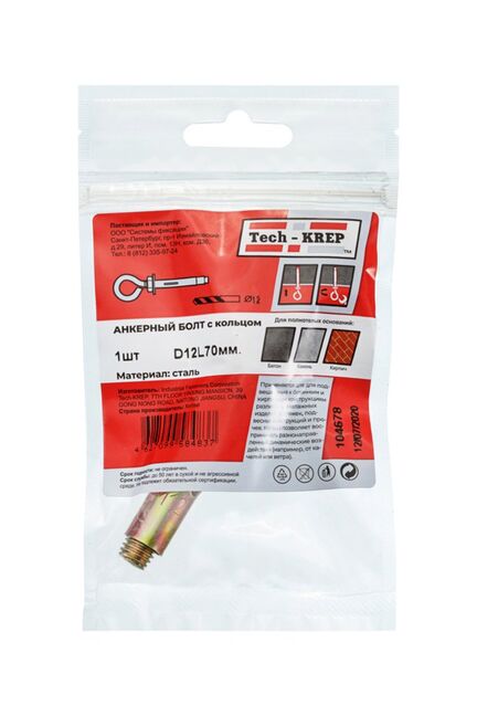 Анкерный болт с кольцом 12х70 (1 шт) - пакет Tech-Krep в Солнечный
