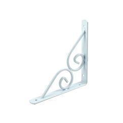Прочный металлический кронштейн 150х150 мм с фигурным дизайном и белым покрытием для надёжного и декоративного крепления полок в любом интерьере.