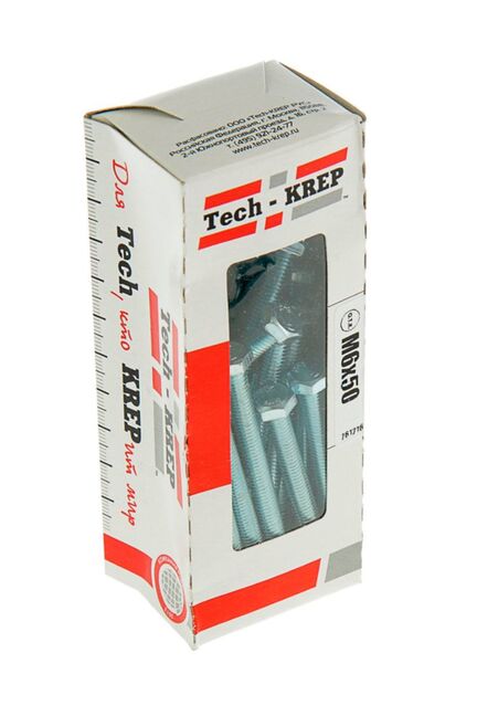 Болт с шестигранной головкой оцинкованный М6х50 в упаковке 40 штук от Tech-Krep соответствует стандарту DIN933, что гарантирует высокое качество и надежность крепежа. Изготовлен из прочной стали с цинковым покрытием, которое защищает от коррозии и обеспечивает долговечность даже в условиях повышенной влажности. Размер М6 (диаметр 6 мм) и длина 50 мм делают его универсальным для множества задач. Компактная коробка с окном позволяет удобно хранить и транспортировать крепежные элементы.