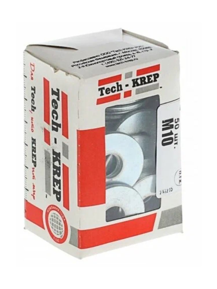 Шайба кузовная оцинкованная М10 DIN 9021 от Tech-Krep, 50 шт. в упаковке. Прочное цинковое покрытие, увеличенная площадь опоры, защита от коррозии.