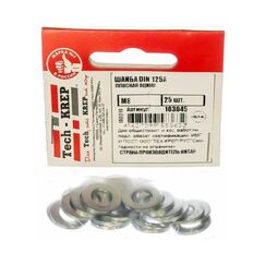 Шайба плоская оцинкованная М10 DIN 125А Tech-Krep, 100 шт. в коробке с окном. Стальная, антикоррозийная, для надежного крепления в строительстве и ремонте.