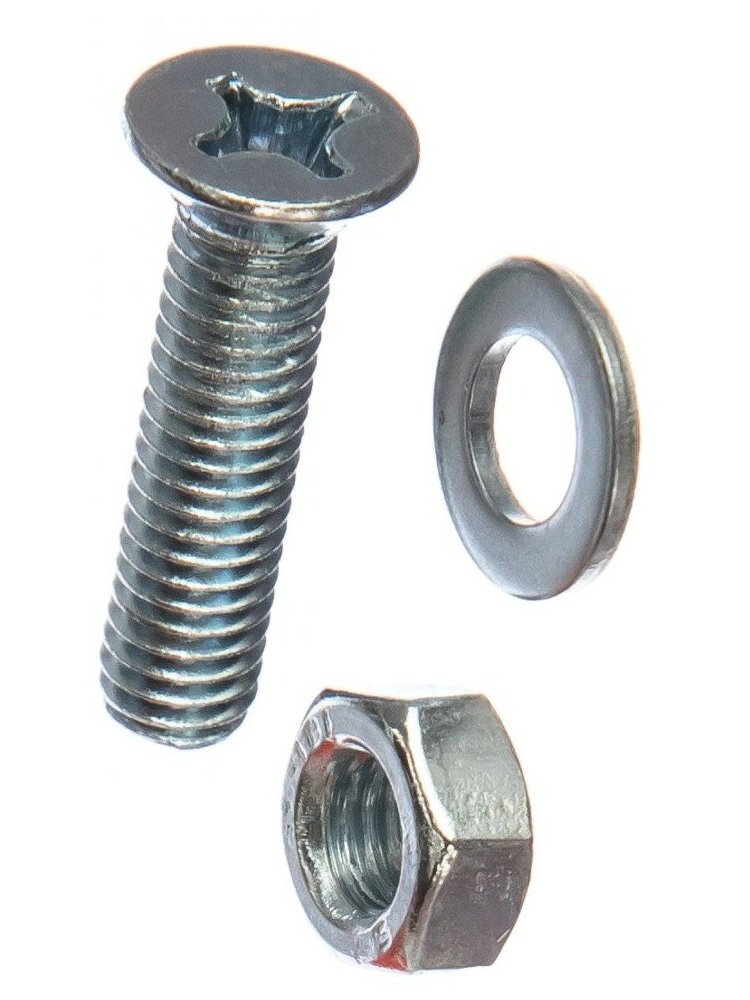Винт DIN965 M5х16 оцинкованный с потайной головкой, в комплекте гайка и шайба, 14 шт, Tech-Krep. Надежный крепеж для строительства и ремонта.