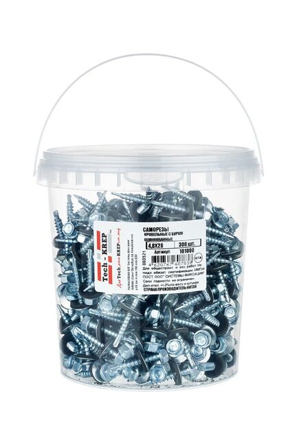Саморез КР ZP св. 4,8х28 Tech-Krep (300 шт) в ведре – надежный крепеж для кровли из стали с цинковым покрытием, устойчив к коррозии, для металла.