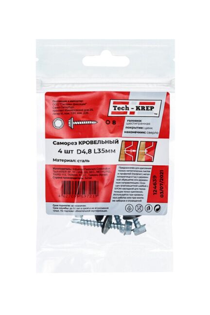 Саморез КР ZP св. 4,8х35 (4 шт) - пакет Tech-Krep в Солнечный