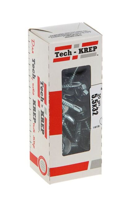 Саморез КР ZP св. 5,5х32 (30 шт.) Tech-Krep с цинковым покрытием для надежного крепления. Острый наконечник, защита от коррозии, удобная коробка с окном.