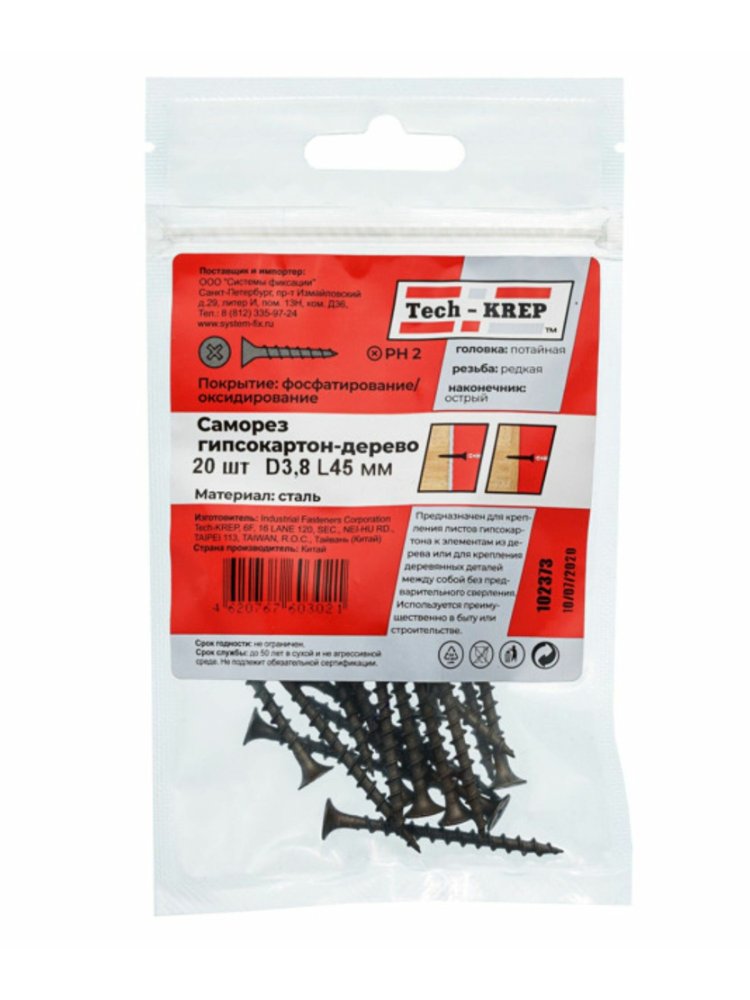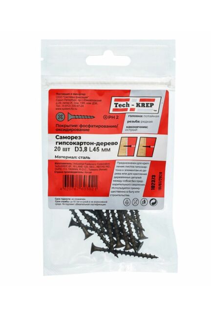 Саморез по дереву 3,8х45 (20 шт) - пакет Tech-Krep в Солнечный
