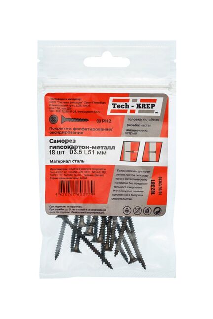 Саморез по металлу 3,5х51 (18 шт) - пакет Tech-Krep в Солнечный