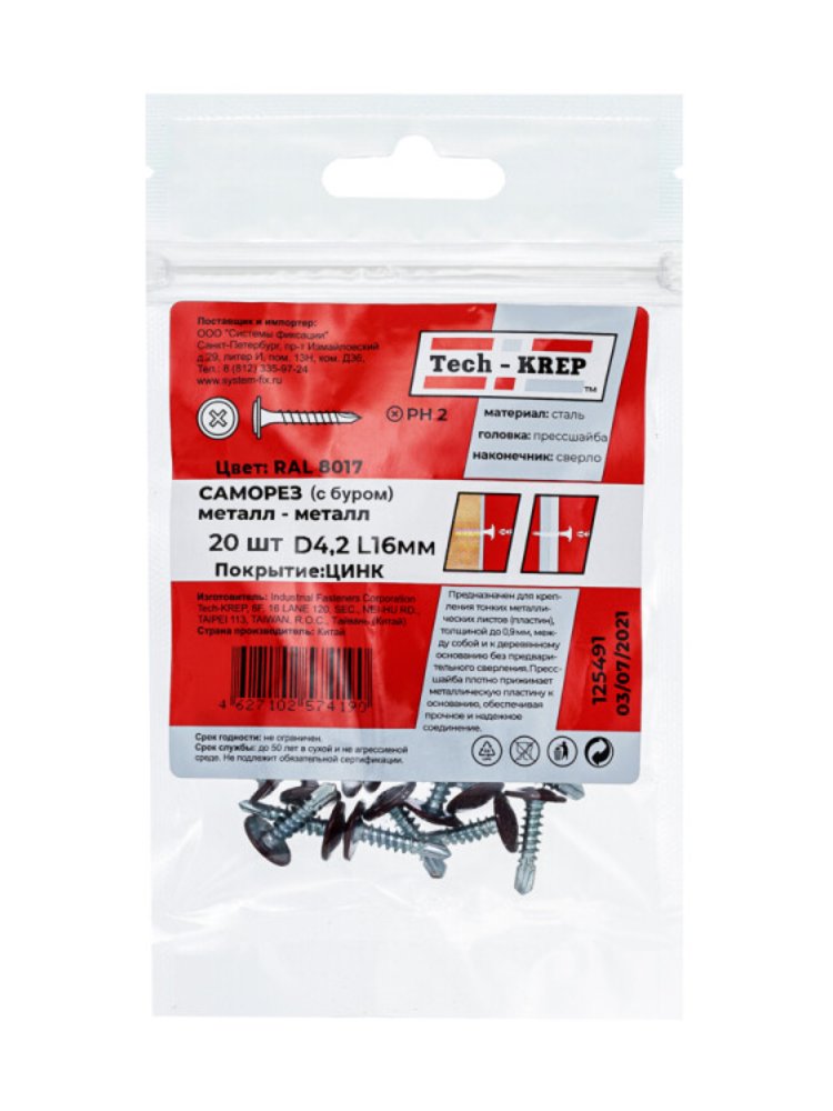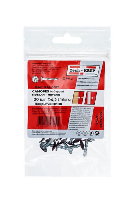 Саморез с п/ш св. 4,2х16 т.кор. (20 шт) - пакет Tech-Krep в Солнечный