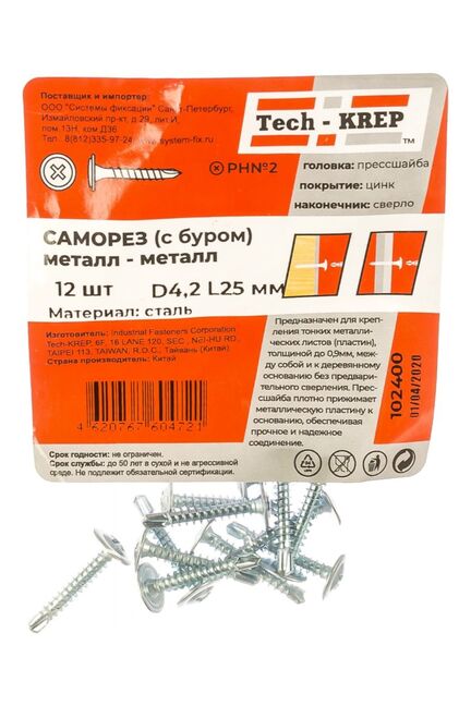 Саморез с п/ш св. 4,2х25 (12 шт) - пакет Tech-Krep