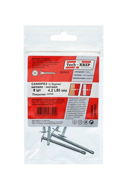Саморез с п/ш св. 4,2х50 (6 шт) - пакет Tech-Krep