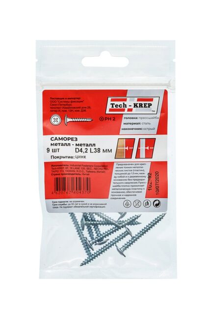 Саморез с п/ш4,2х38 (9 шт) - пакет Tech-Krep