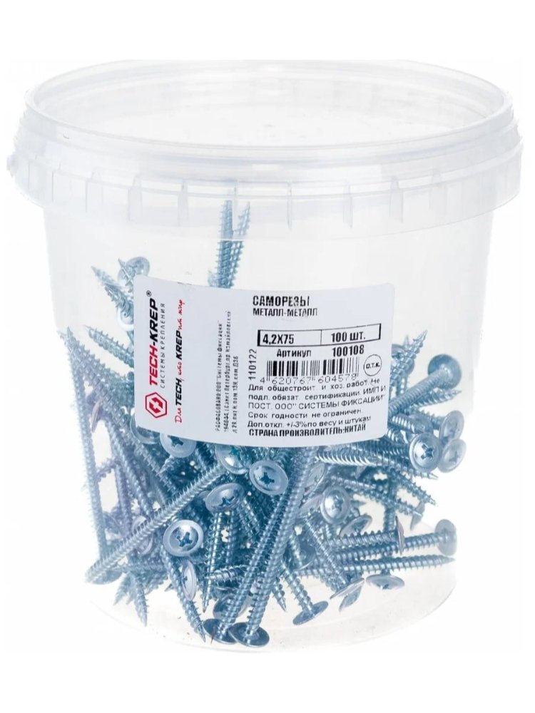 Надежный крепеж – залог долговечности конструкций! Универсальные саморезы с прессшайбой 4,2х75 мм (100 шт) подходят для монтажа элементов из металла, дерева и гипсокартона в строительстве и ремонте. Идеальны для работ внутри помещений и на открытом воздухе.