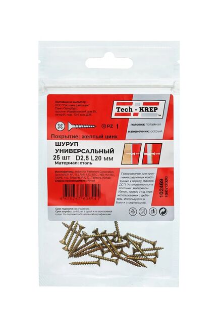 Саморез универс. желтый 2,5х20 пот. гол. (25 шт) - пакет Tech-Krep в Солнечный
