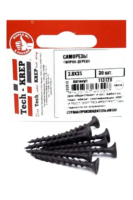 Саморез по дереву 3,8х35 (30 шт) - пакет Tech-Krep в Солнечный