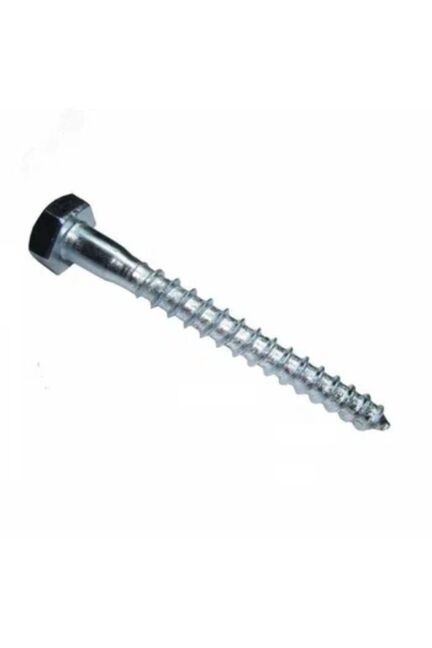 Прочный оцинкованный шуруп 12×80 мм для фиксации тяжелых конструкций, надёжная фиксация дерева и металла, удобен для массового крепежа, не ржавеет.