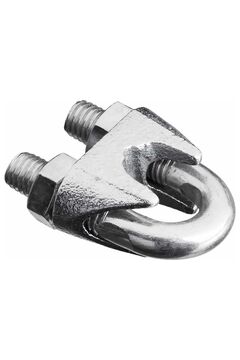 Предназначен для соединения тросов межде собой, для фиксации петель на концах тросов. Оцинкованный зажим DIN741 М10 для фиксации стальных канатов до 10 мм, прочный, коррозионностойкий, комплект 50 шт., легко монтируется.