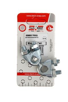 Зажим для каната DIN741 10 мм Tech-Krep (2 шт) из оцинкованной стали обеспечивает надежное крепление тросов. Прочный, устойчив к коррозии, прост в установке.