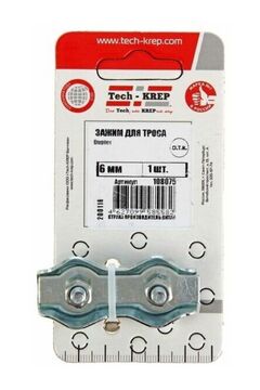 Зажим для троса Duplex 6 мм Tech-Krep - надежное крепление для тросов до 6 мм. Оцинкованная сталь, защита от коррозии, простая установка.