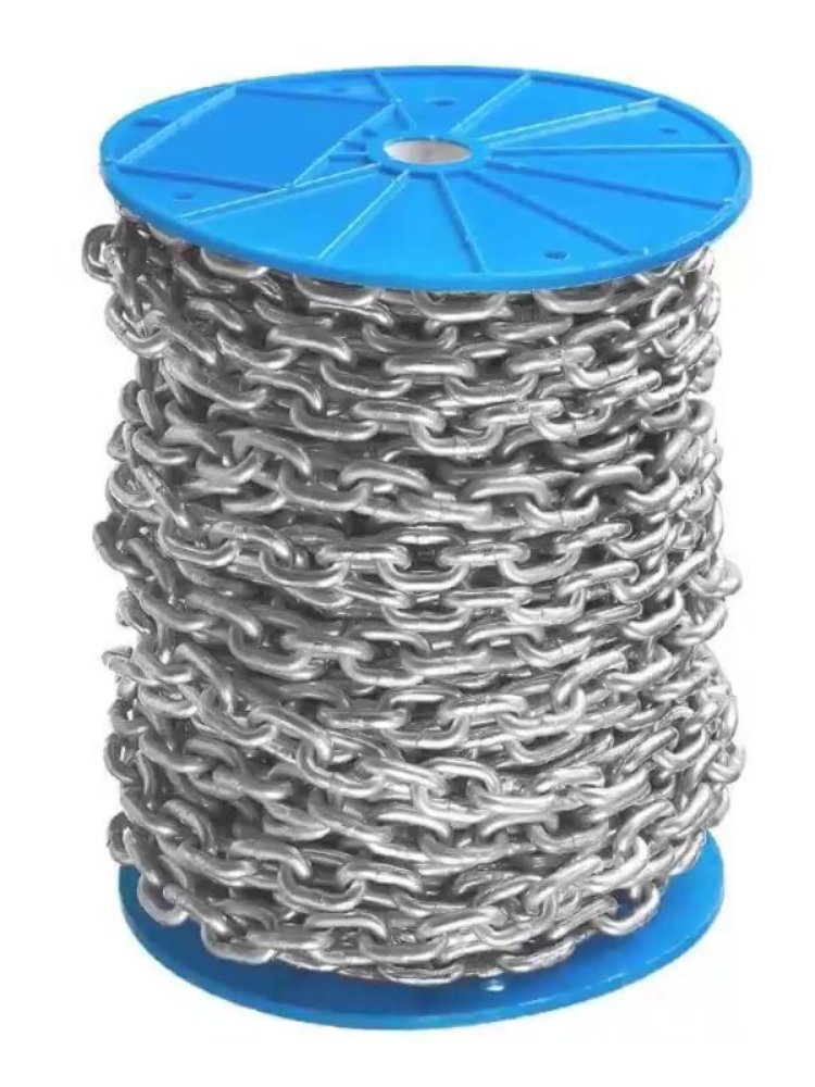 Оцинкованная короткозвенная цепь DIN 766, 2 мм, бухта 80 м — для крепежа и подвесов, устойчива к коррозии и предназначена для разных монтажных задач.