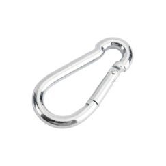 Карабин пожарный оцинкованный DIN 5299 C. Карабин пожарный имеет пружинный затвор и применяется для быстрого соединения или крепления цепей и тросов, не используется для подъема грузов. Карабин оцинкованный DIN5299C 8×80 мм выдерживает высокие нагрузки, не подвержен коррозии, прост в монтаже. Оптимально для крепления и подвеса.