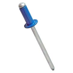 Заклепки алюминий-сталь используются: для неразъёмного соединения листового металла, крепления различных деталей к металлическим конструкциям методом сквозного монтажа. Состоит из распорной втулки и стержня с увеличенным шарообразным концом. Комбинированная заклёпка 4,8×10 мм ярко-синяя, алюминий/сталь, стойкая к коррозии, для прочного и декоративного соединения. 500 шт.
