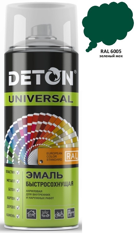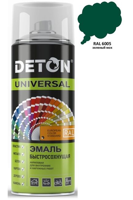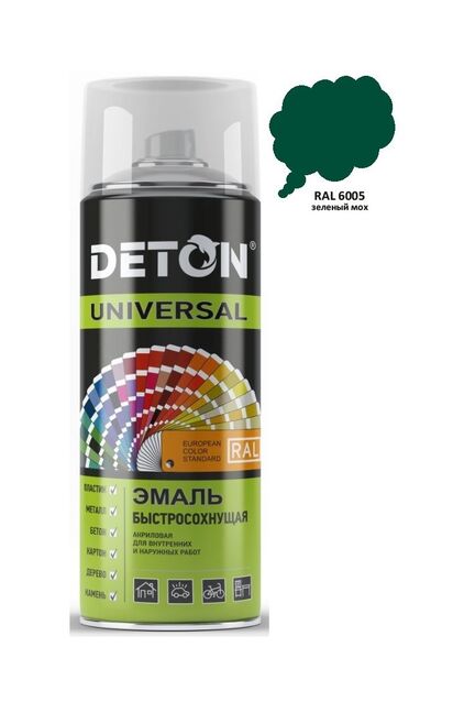 Эмаль аэрозольн. универс. Детон Зеленый мох (6005) 520мл в Солнечный