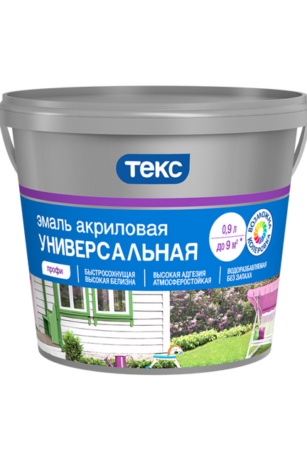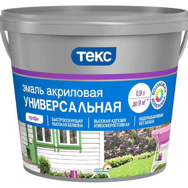Для окраски окон и дверей внутри помещений, мебели, стен и потолков, требующих частого мытья, деревянных фасадов, а также балок, откосов, подверженных атмосферной нагрузке. Подходит для радиаторов. Время высыхания Матовая: «от пыли» - 1 час. Следующий слой наносить через 4–6 часов. Глянцевая: «от пыли» - 2 часа. Следующий слой наносить через 10–12 часов. Расход 9-11 м²/л. Разбавитель вода. Срок службы покрытия до 8 лет для глянцевой эмали и менее 2 лет для матовой эмали. Универсальная акриловая матовая эмаль: быстро сохнет, не желтеет, устойчивая к истиранию, подходит для дерева, металла и бетона.