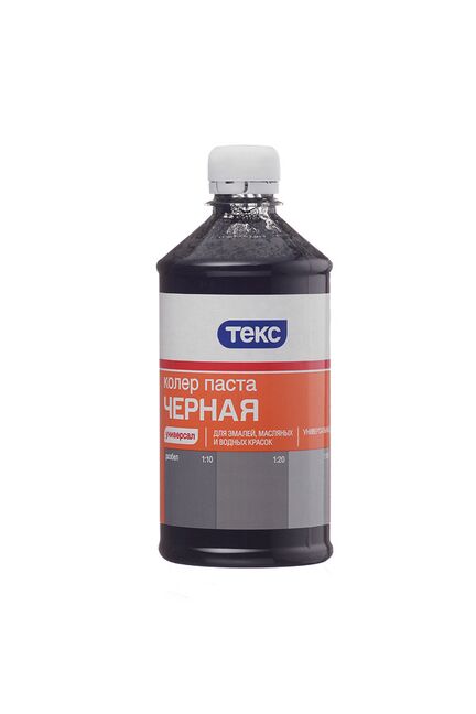 Колеровочная паста универсальная для эмалей, масляных и водно-дисперсионных красок. Для колеровки фасадных красок рекомендуется использовать только колер пасты: Кофейная №10, Бежевая №15, Карамель №22, Охра №09 . Не рекомендуется использовать для колеровки известковых и силикатных красок. Колер паста не используется в чистом виде. Черный универсальный колер 0,5 л: насыщенный стойкий пигмент для колерования водоэмульсионных и акриловых красок, экономичный расход.