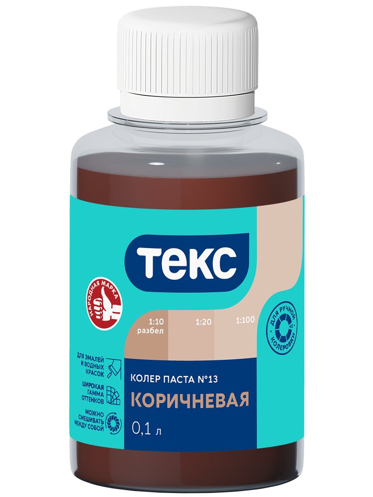 Универсальный коричневый колер придаст интерьеру и экстерьеру насыщенный цвет, обеспечивая равномерное окрашивание любых водных и дисперсионных лакокрасочных материалов. Применяется для колеровки акриловых, латексных, водоэмульсионных красок, шпатлевок, штукатурок — как стен и потолков внутри помещений, так и фасадов снаружи.