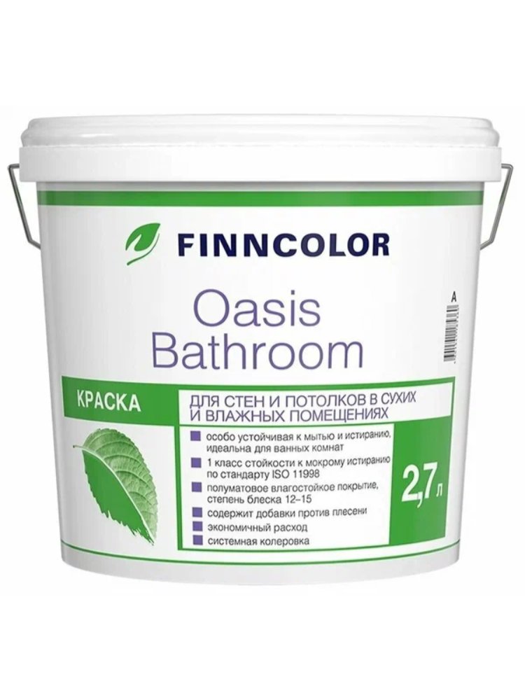 Краска устойчива к влажности, плесени и мытью, подходит для ванных и кухонь. Быстро сохнет, почти не пахнет, лёгкая в нанесении.