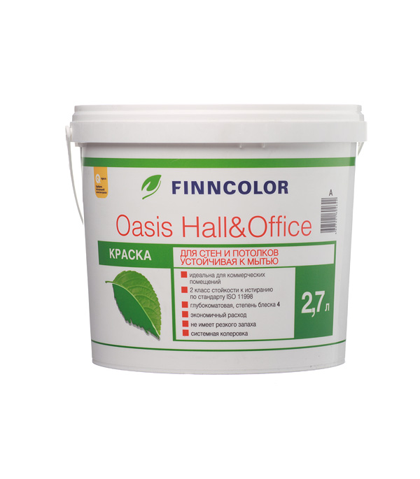Краска интерьерная OASIS HALL & OFFICE A гл/мат 2,7л Finncolor в Солнечный