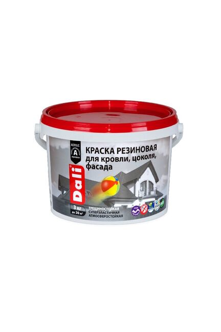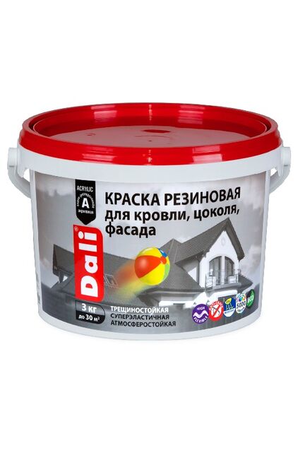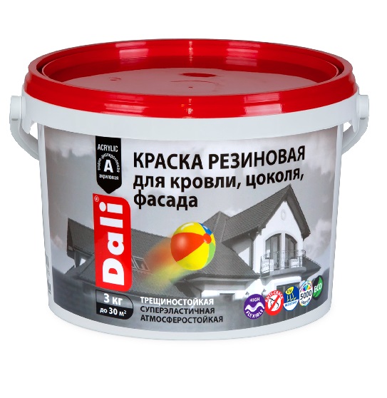 "Назначение:защитно-декоративное окрашивание крыш, фасадов, цоколя зданий и сооружений, требующих долговременной эксплуатации и подверженных образованию трещин; декоративное окрашивание стен и потолков в жилых и общественных помещениях с повышенной влажностью воздуха или неотапливаемых. Область применения: Снаружи и внутри помещений: по минеральным поверхностям (шифер волнистый и плоский, черепица цементно-песчаная, бетонные изделия, кирпич, цементно-стружечные плиты, асбестоцементные плиты, фиброцементные плиты, цементно-песчаные штукатурки, гипсокартон); по различным конструкциям (панели, модули) из воздушно-сухой древесины, ОСБ, ДСП, ДВП применяемых при строительстве каркасно-панельных и модульных домов; по оцинкованной стали, загрунтованным металлическим поверхностям, по искусственной черепице." Эластичная, влагостойкая, износостойкая чёрная краска для любых поверхностей. Не трескается, выдерживает мороз, устойчива к уф-лучам и осадкам.