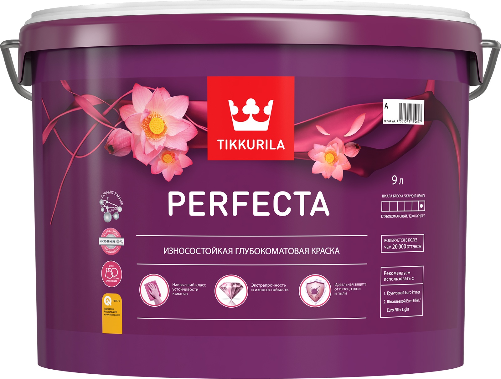 Краска ВД интерьерная PERFECTA A гл/мат 9л Tikkurila в Солнечный