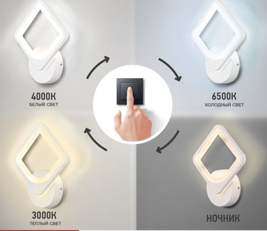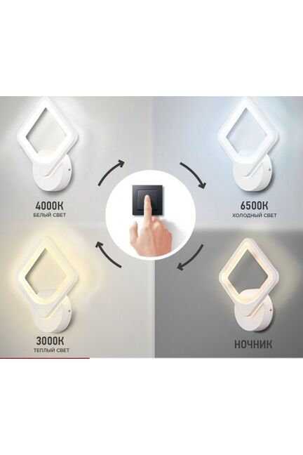 Гарантия: 2 года Размеры (Д*Ш*В): 200*200*45 мм Световой поток (лм) -1 200 Светильники имеют функцию step color пошаговое управление цветовой температурой выключателем в заданной последовательности: теплый, белый, холодный свет или "ночник. Память настроек Регулируемое LED бра 15 Вт с диапазоном света 3000–6500K, энергосбережение, современный дизайн, долгий срок службы, простая установка.