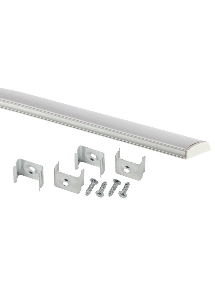 В комплект входят: гибкий анодированный профиль и необходимые аксессуары (матовый экран, 2 заглушки - глухая и сквозная, 4 крепежа). Способ установки профиля - накладной. Позволяет реализовать смелые дизайнерские решения, зонировать пространство, осуществлять практичную подсветку, создавать световые инсталляции и оригинальные светильники. Удобно крепить как 2-сторонним скотчем, так и при помощи саморезов. Анодированный алюминий прочный и лёгкий, устойчив к коррозии и механическим повреждениям. Оксидное покрытие делает поверхность гладкой, что облегчает покраску. Профиль можно использовать в помещениях с повышенной влажностью. Гибкий накладной профиль, 2 м, для светодиодной ленты, легко монтируется на изогнутые поверхности, в упаковке 5 шт, для интерьерной подсветки.
