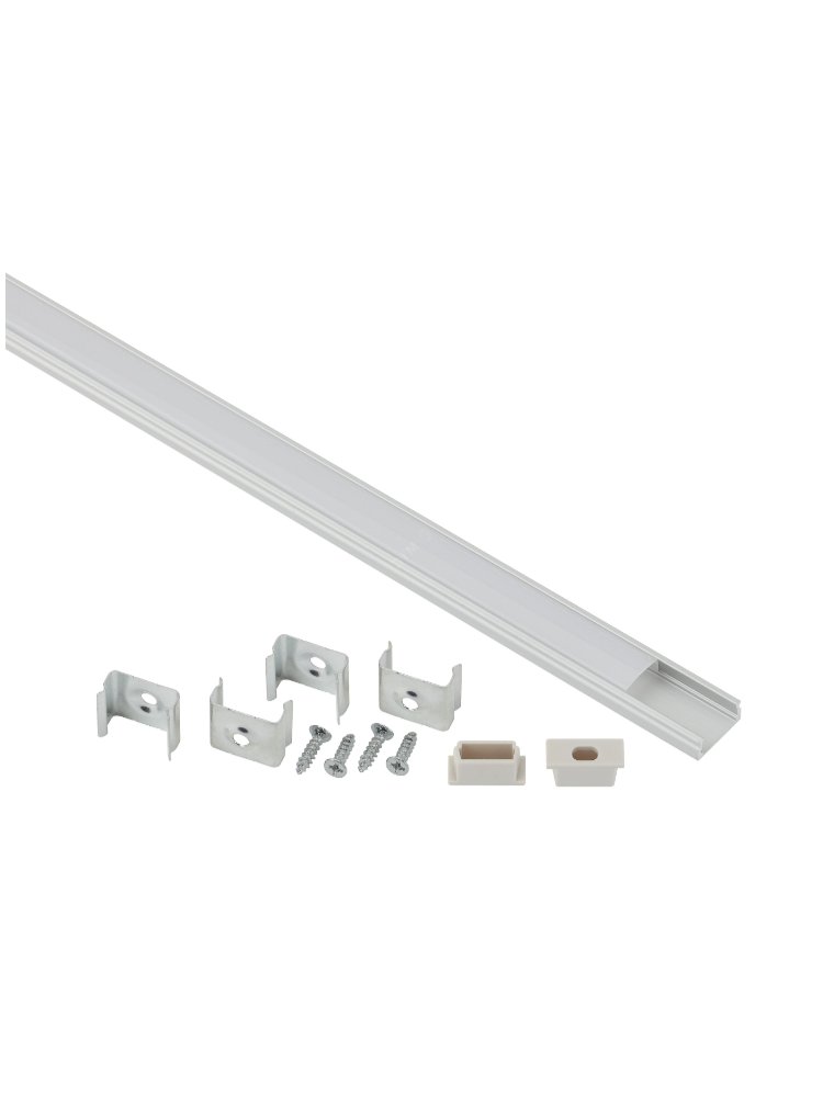 Комплект предназначен для установки светодиодных лент. За счёт отведения тепла от работающих светодиодов увеличивает срок службы ленты. Анодированное покрытие обеспечивает устоичивость к воздействиям окружающей среды, обеспечивает гладкость и легко окрашивается. Эстетично смотрится в интерьере, обеспечивает механическую защиту. В комплекте накладной анодированный профиль CAB262 16х6мм, 2м, защитный экран 2 м, 4 крепления и 2 заглушки. Алюминиевый профиль 16×6 мм, 2 м, защита и рассеивание света для LED-лент, легкий монтаж, комплект крепежей, продлевает срок службы ленты.