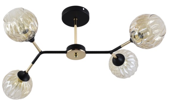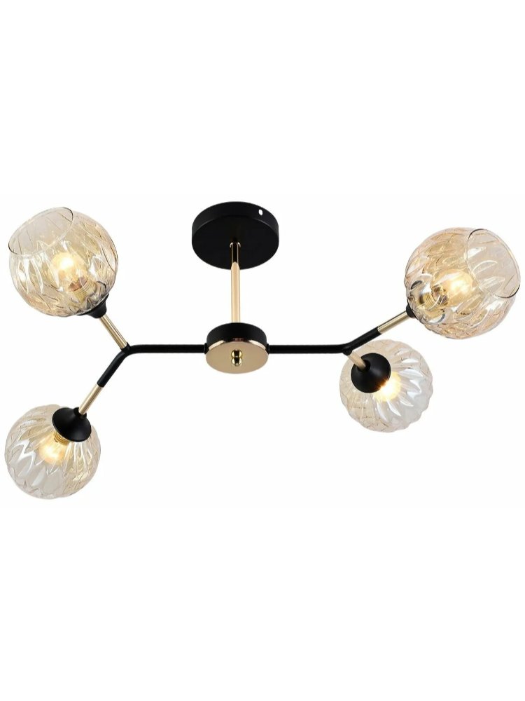 Стильная люстра на 4 лампы E27 до 60 Вт, черный с золотом, для современных интерьеров площадью до 16 м². Удобна в установке и надежна.