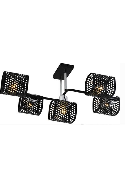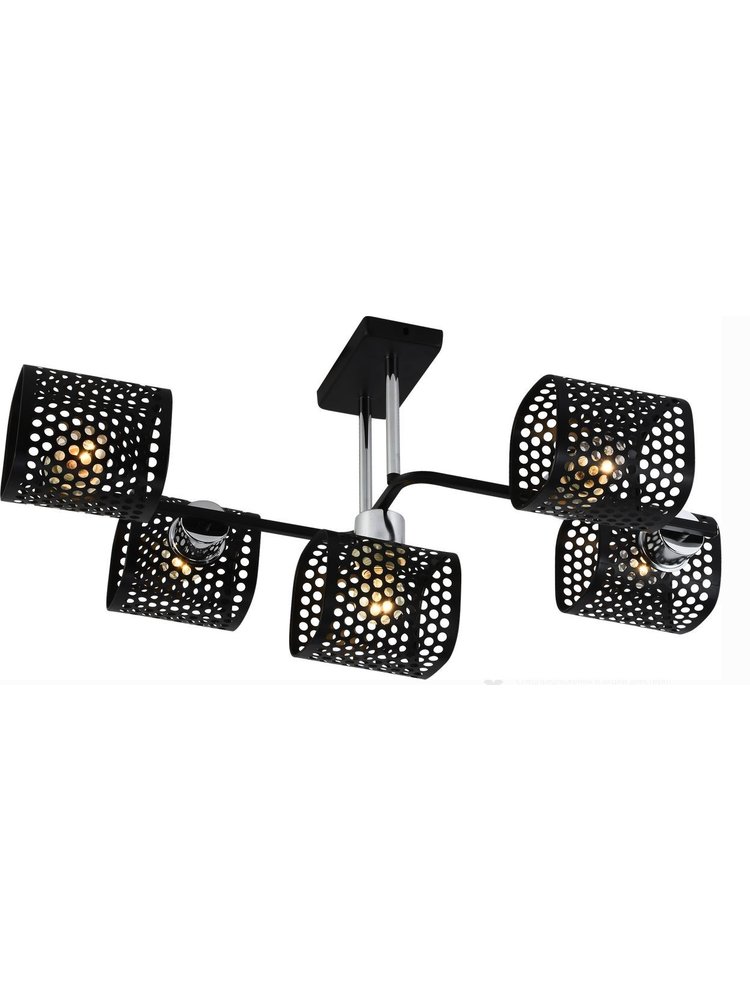 Потолочная люстра на 5 ламп Е27 до 60Вт, стильный черный с хромом, для эффективного освещения жилых и офисных помещений до 20 м².