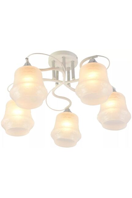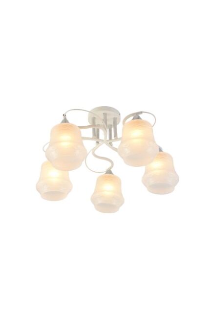 Размеры: (Д*Ш*В) 520*520*270 мм Современная люстра на 5 ламп E27, белый с хромом, идеальна для гостиной или кухни. Стиль, универсальность, простота монтажа, до 60 Вт на лампу.