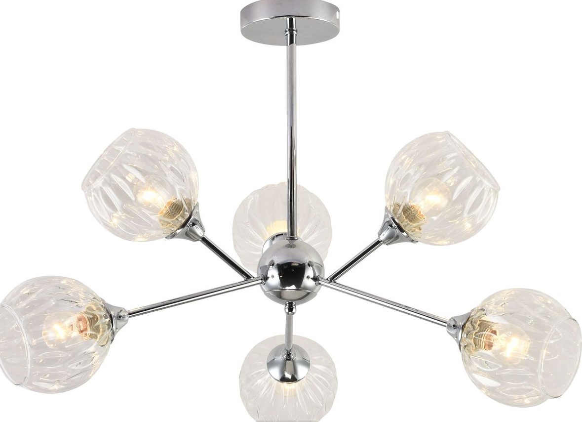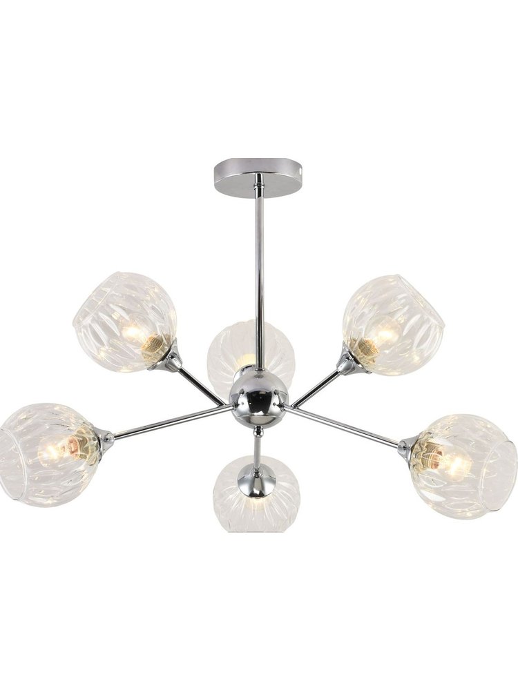 Люстра на 6 ламп E27, хром, до 60 Вт на лампу, стильный дизайн, подходит для жилых и коммерческих помещений, легко монтируется и обслуживается.