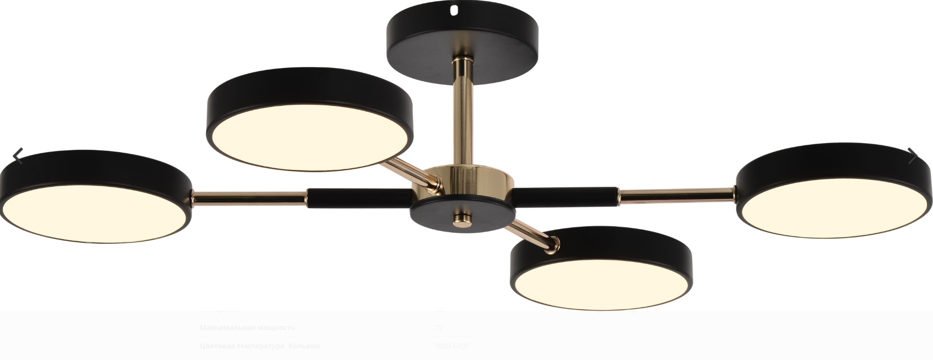 Люстра LED 4 лампы 60491/4 BK+FGD черный/золото 3000-6000K 72W (БЕЗ ПДУ) в Солнечный