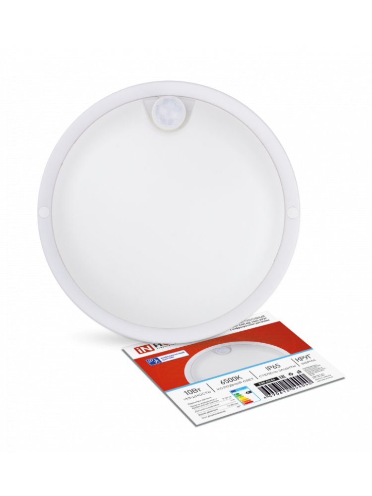Светильник светодиодный влагозащищенный СПП-ИД-КРУГ 10Вт 6500К 900Лм датч. движ. IP65 IN HOME в Солнечный