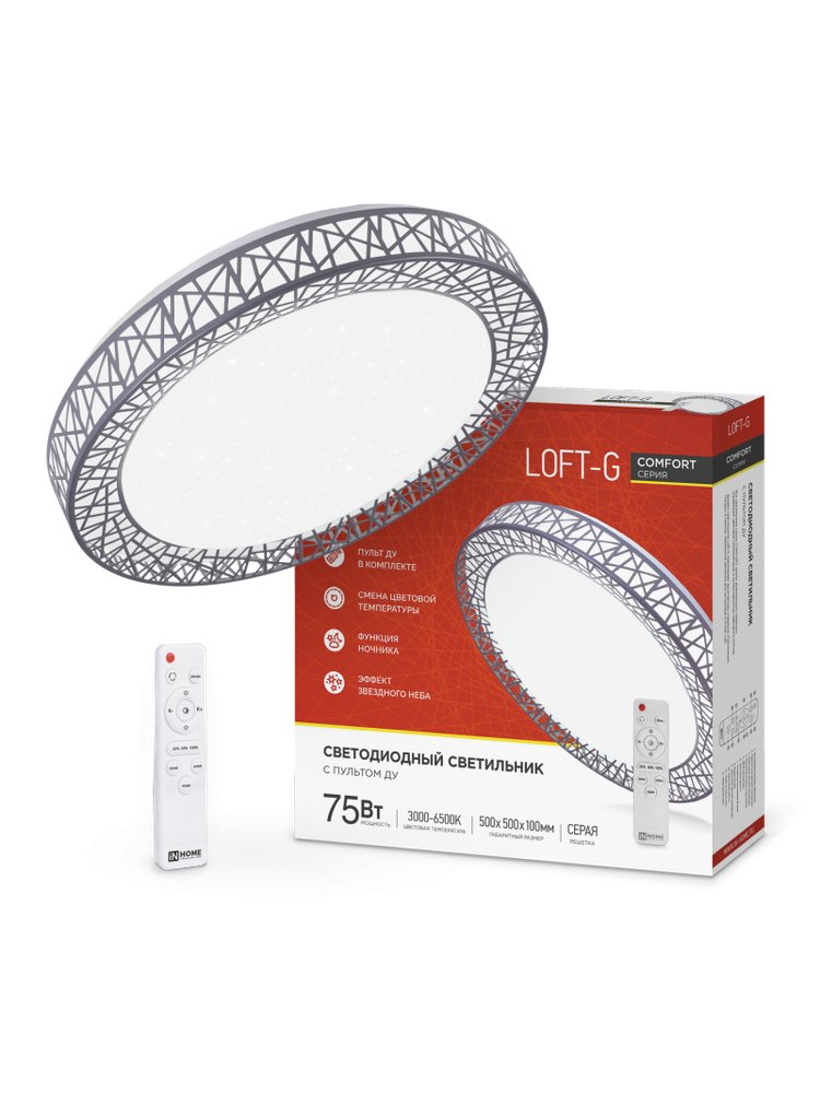 Светильник светодиодный с пультом COMFORT Loft-G 75Вт 230В 3000-6500K 6000Лм 500x100мм IN HOME