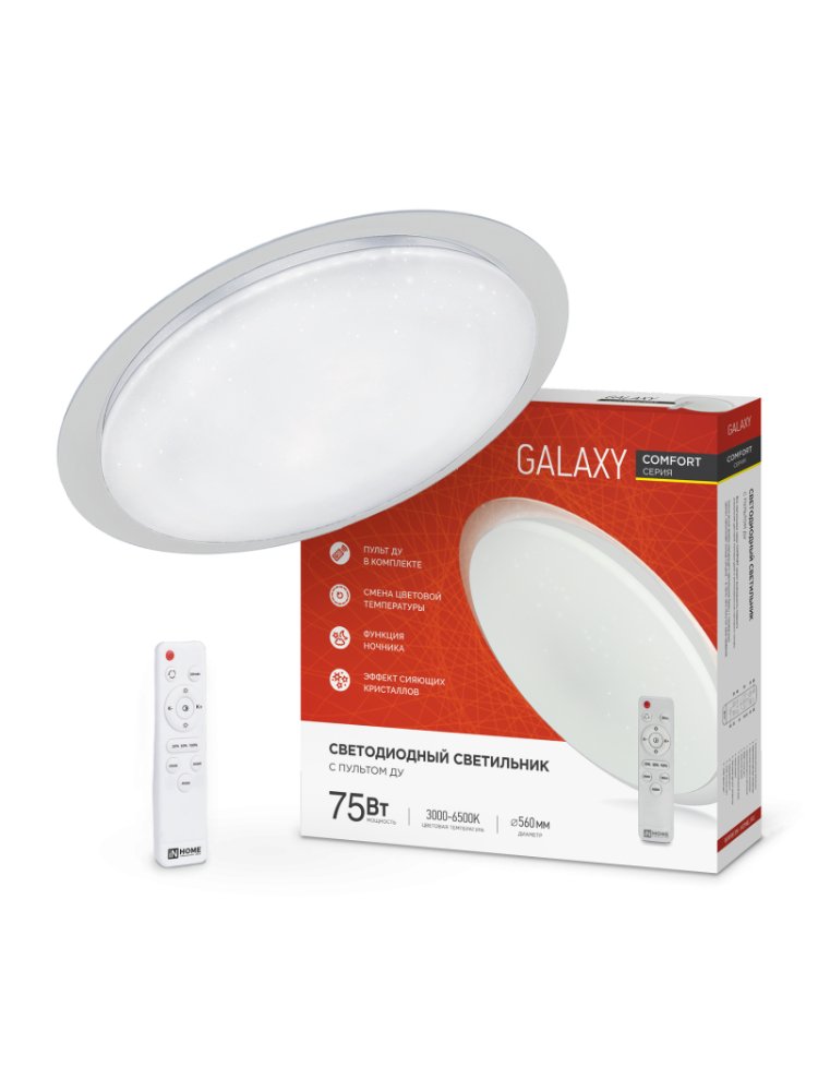 - Интуитивно понятный пульт управления позволяет выбирать комфортную яркость и оттенок под настроение или задачи.