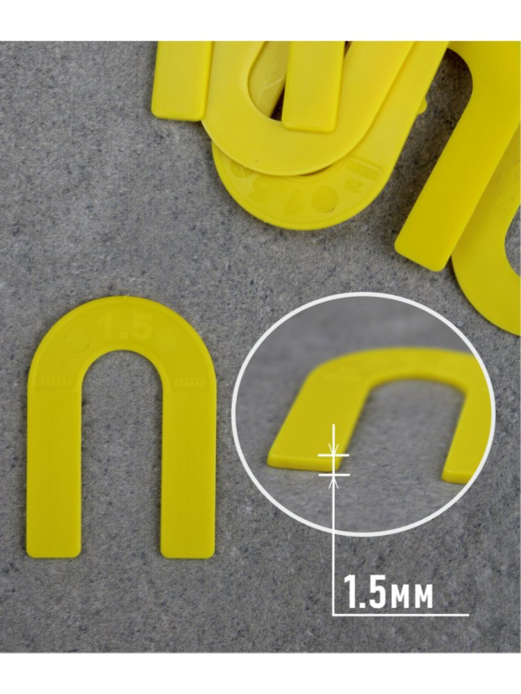 Подкова СВП для формирования межплиточного шва. Для горизонтальной и вертикальной укладки плитки. Подходит для крупноформатного кафеля. Многоразовые подковы 1,5 мм для точного шва, 50 шт., удобны для укладки плитки и керамогранита, обеспечивают плотность и равномерность монтажа.