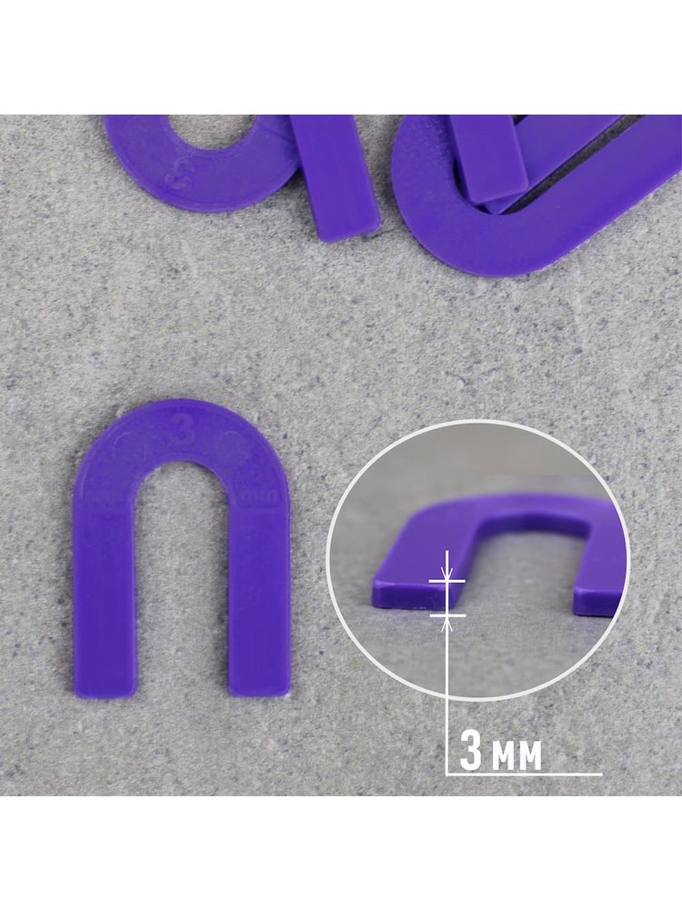 Подкова СВП для формирования межплиточного шва. Для горизонтальной и вертикальной укладки плитки. Подходит для крупноформатного кафеля. Многоразовые подковы 3,0 мм для точных швов при укладке плитки, 50 шт. в пакете. Экономия расходников и удобство при монтажных работах.