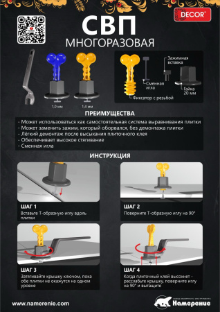 СВП многоразовая 1,4 мм, пакет 50 шт + ключ, Decor в пгт. Солнечный